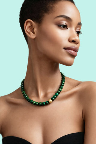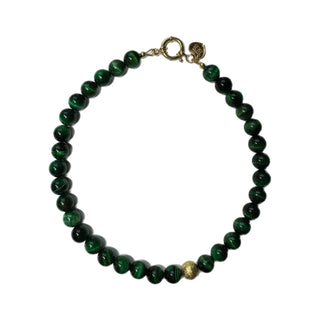 VERDURE Necklace – 12 mm Green Tiger’s Eye Beaded | Gold - Plated Silver
