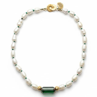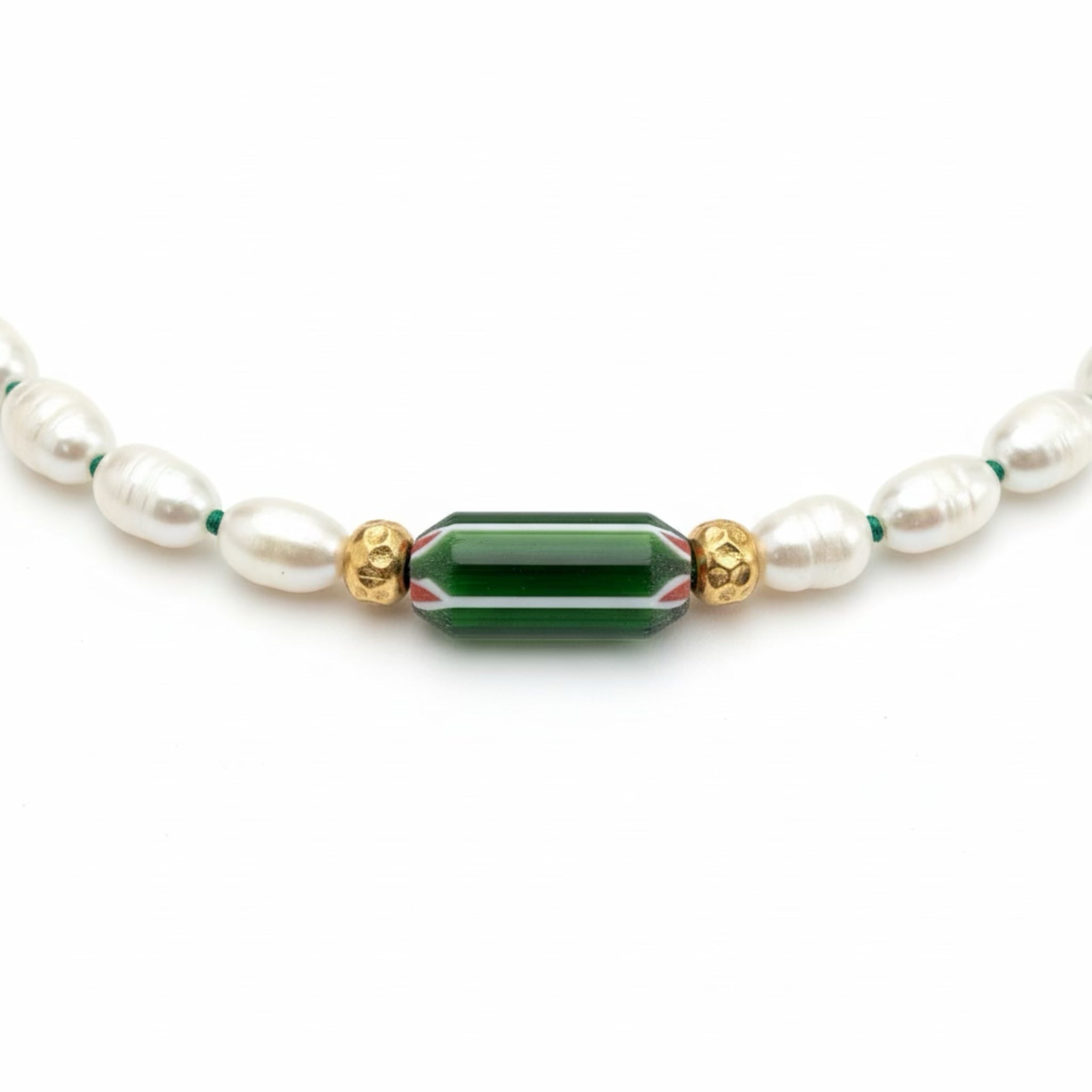 VERDE Necklace — Baroque Pearls & Venetian Chevron Bead | Gold-Plated Silver